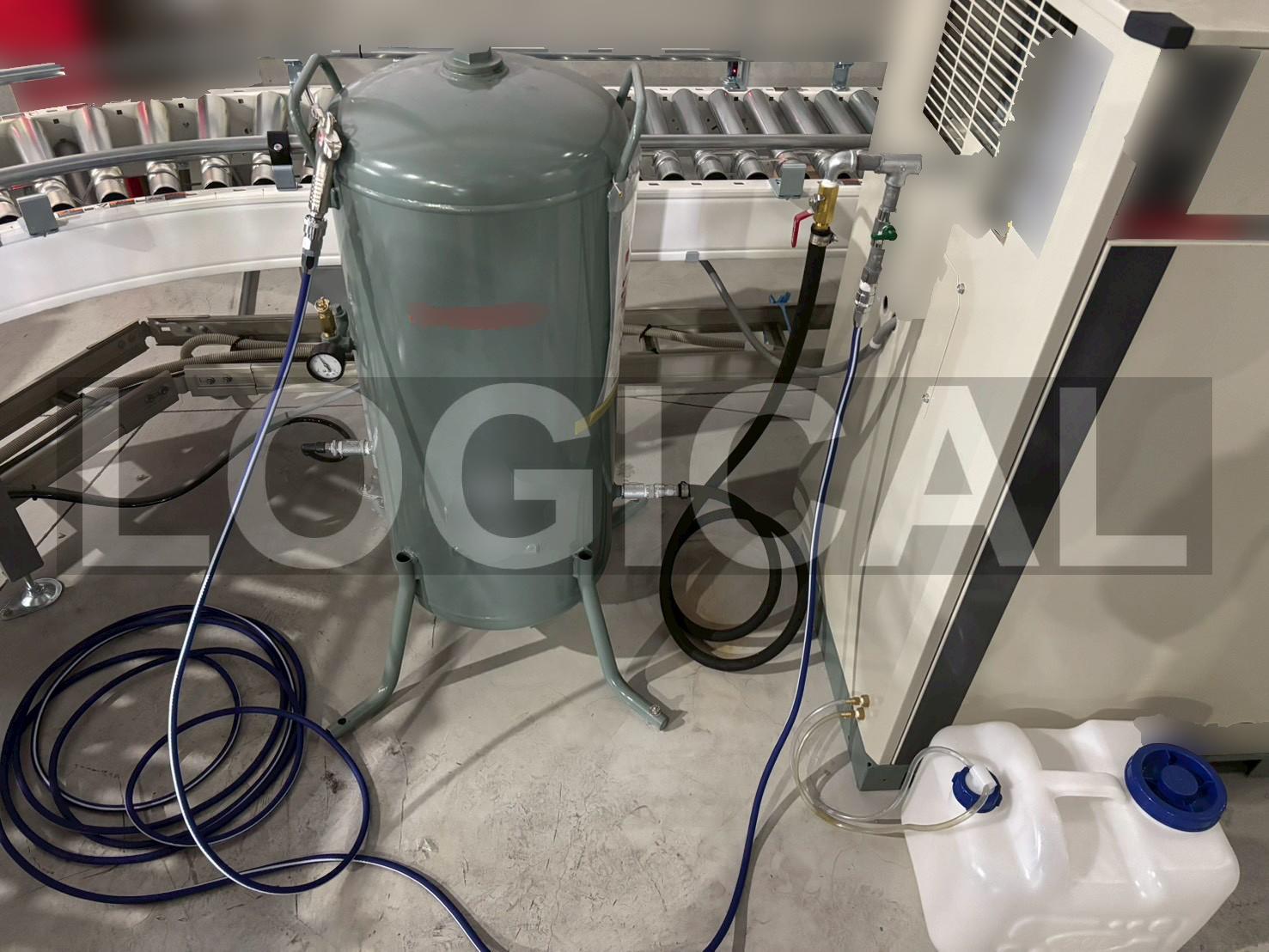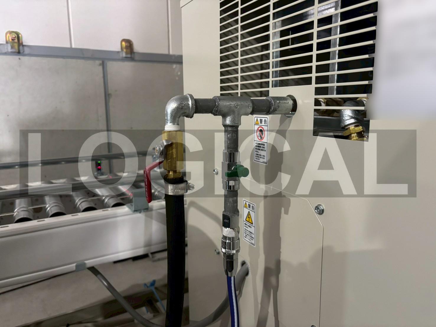 コンベアで搬送される商品に付着した埃を除去するため、エアーガンの取り付け工事を行いました。