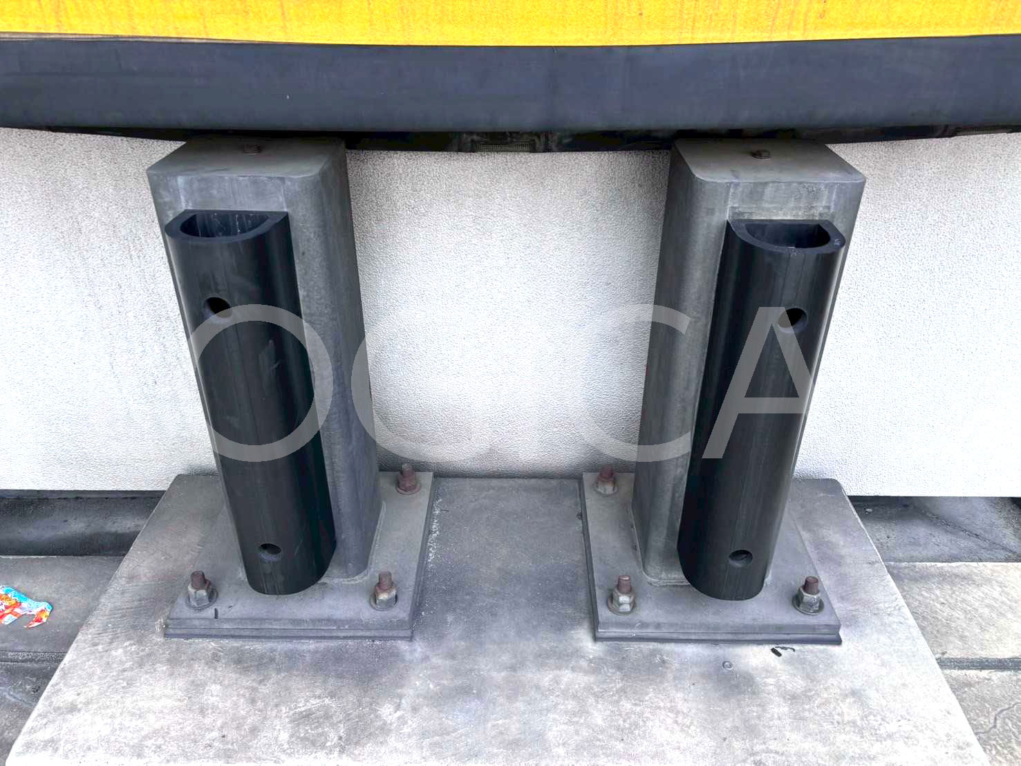 長年の使用による劣化で衝撃吸収性能が低下していたゴムを新しくすることで、トラック接触時の安全性と設備保護機能が向上しました。