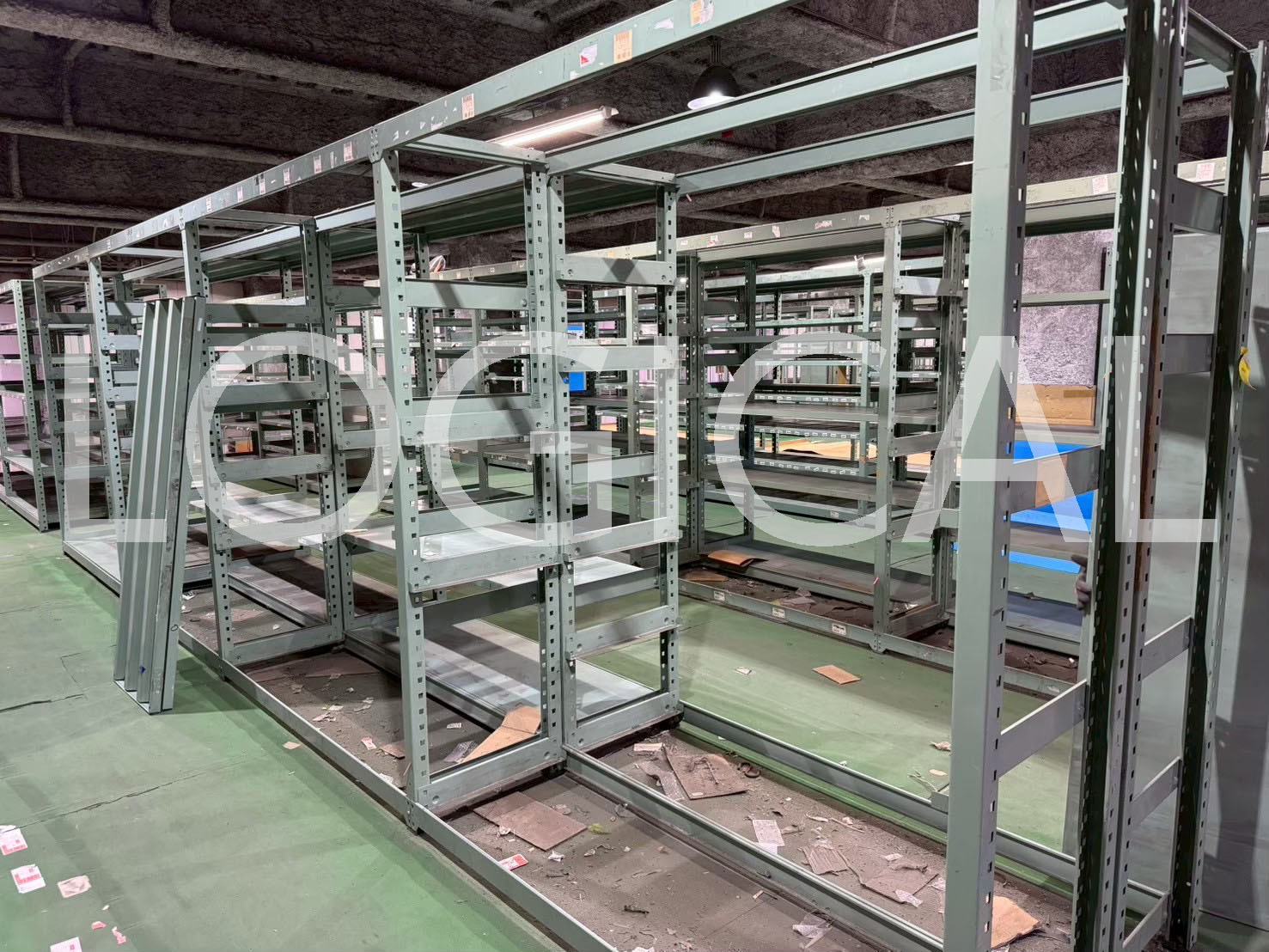 倉庫内に設置されていた多数の中量ラックを解体・撤去しました。