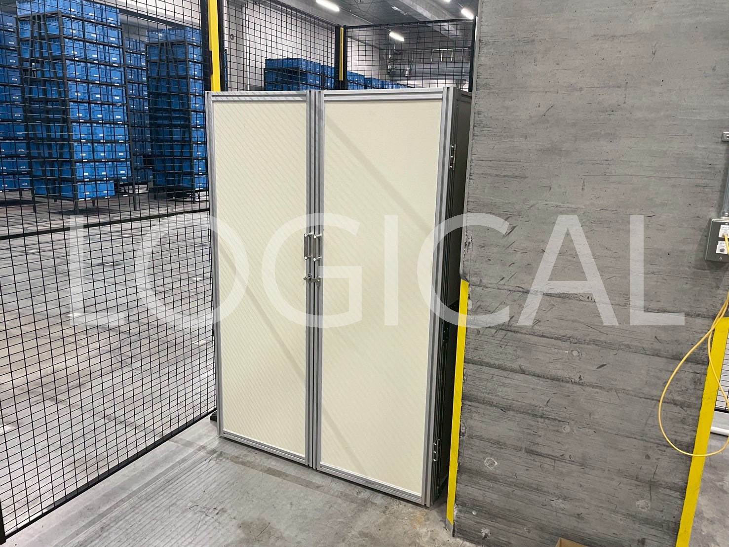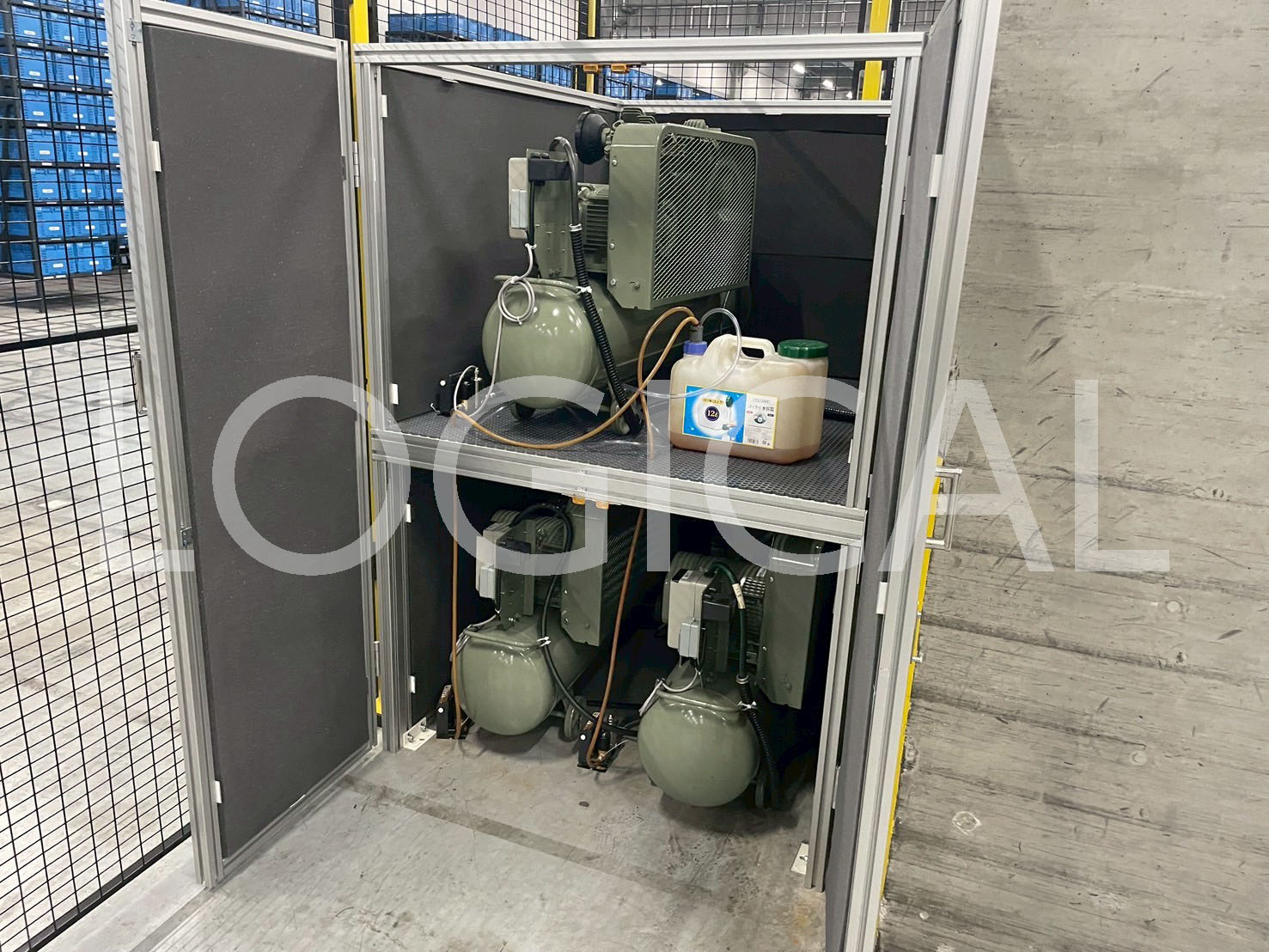 ピッキング作業を行う倉庫内で使用されているコンプレッサからの騒音が問題となっていたため、防音対策として専用の防音室を設置しました。