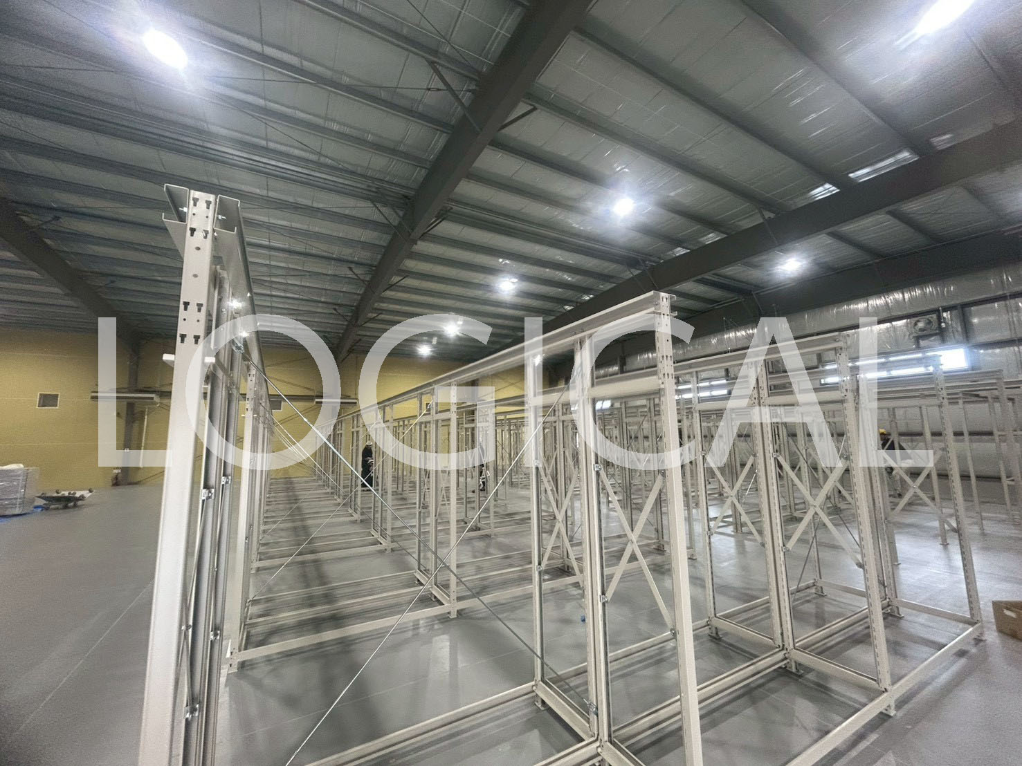 新設倉庫の保管エリアに、中量ラックと中量積層ラックを導入しました。