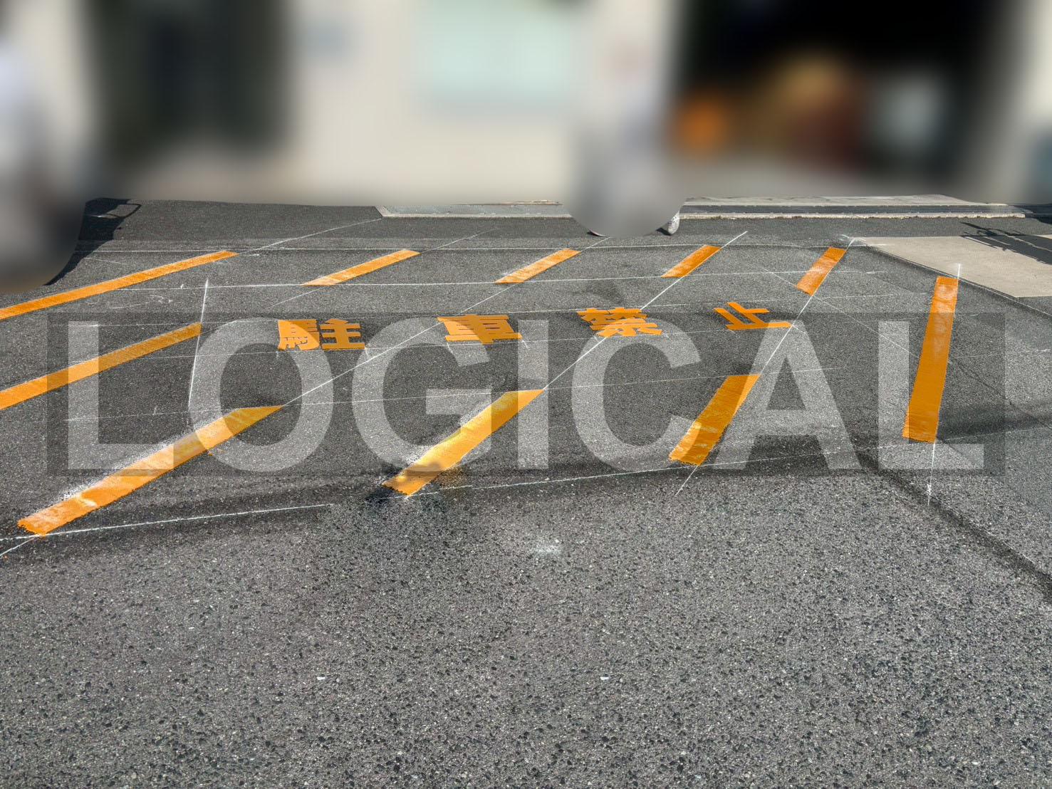 玄関入口付近への駐車を防止するため、白枠による区画線と、オレンジ枠+「駐車禁止」表示のライン塗装工事を行いました。