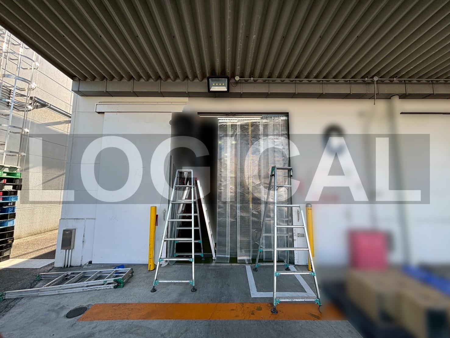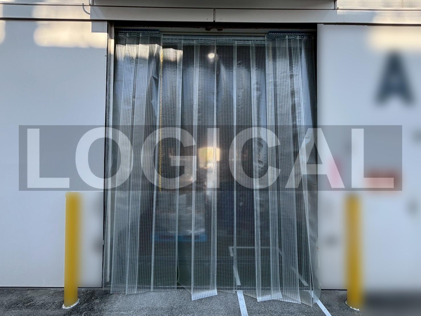 温度管理を行っている倉庫において、開口部からの冷気流出を防ぐため、不燃短冊スライドカーテンを設置しました。