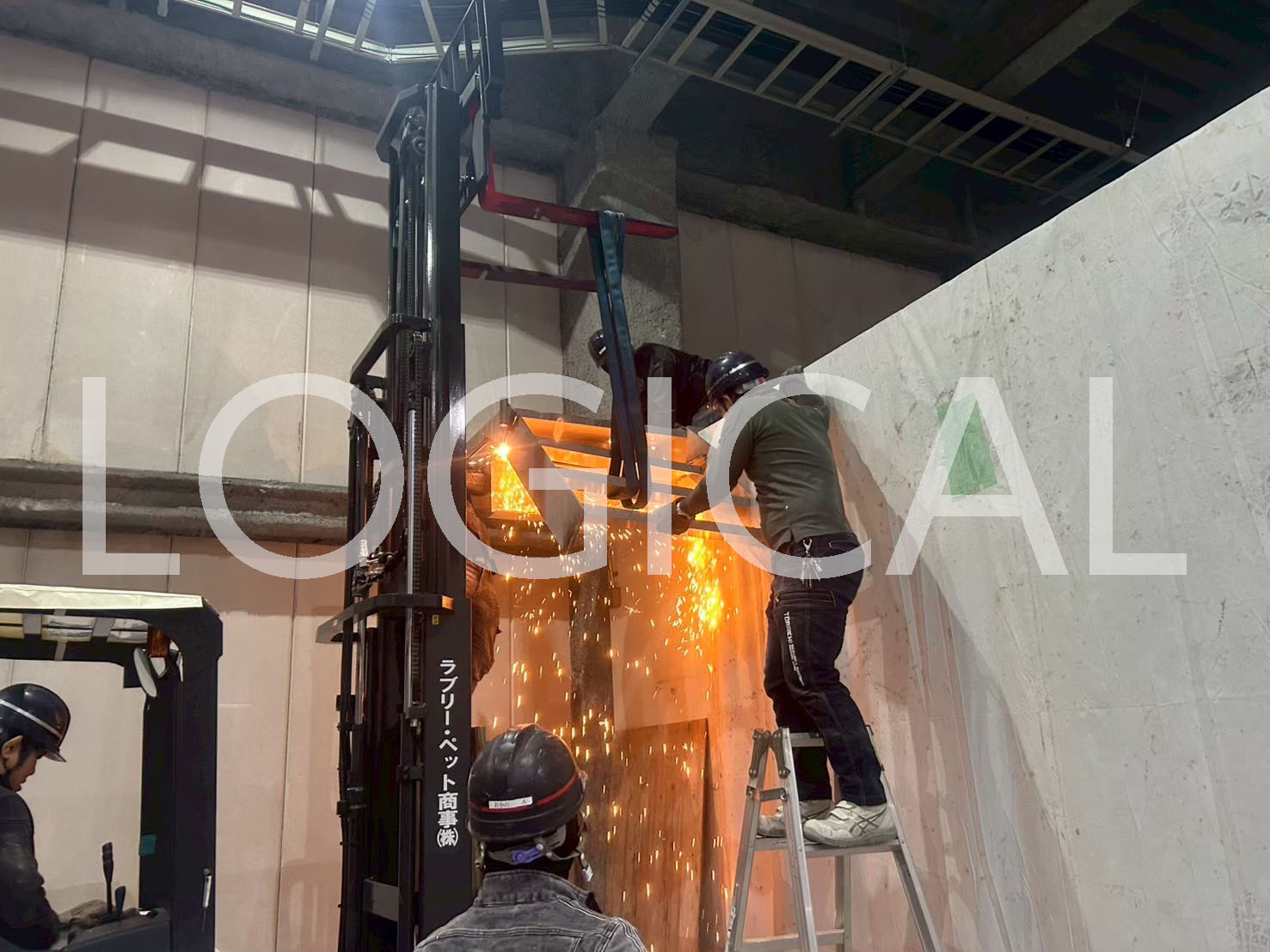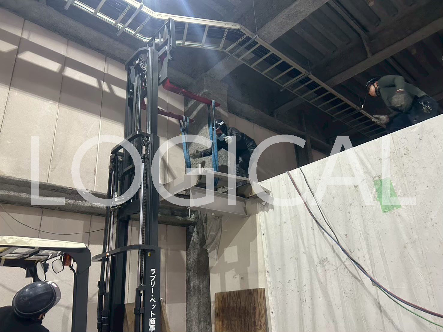 倉庫内のレイアウト変更により、動線の妨げとなっていた鉄骨階段を撤去しました。