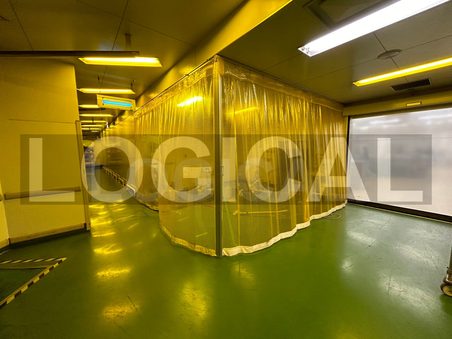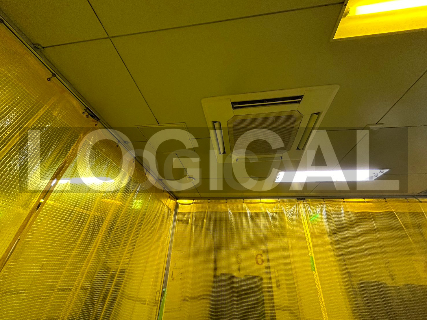 ビニール間仕切りで簡易的に区画し、冷気を逃がさない冷蔵ブースを構築。