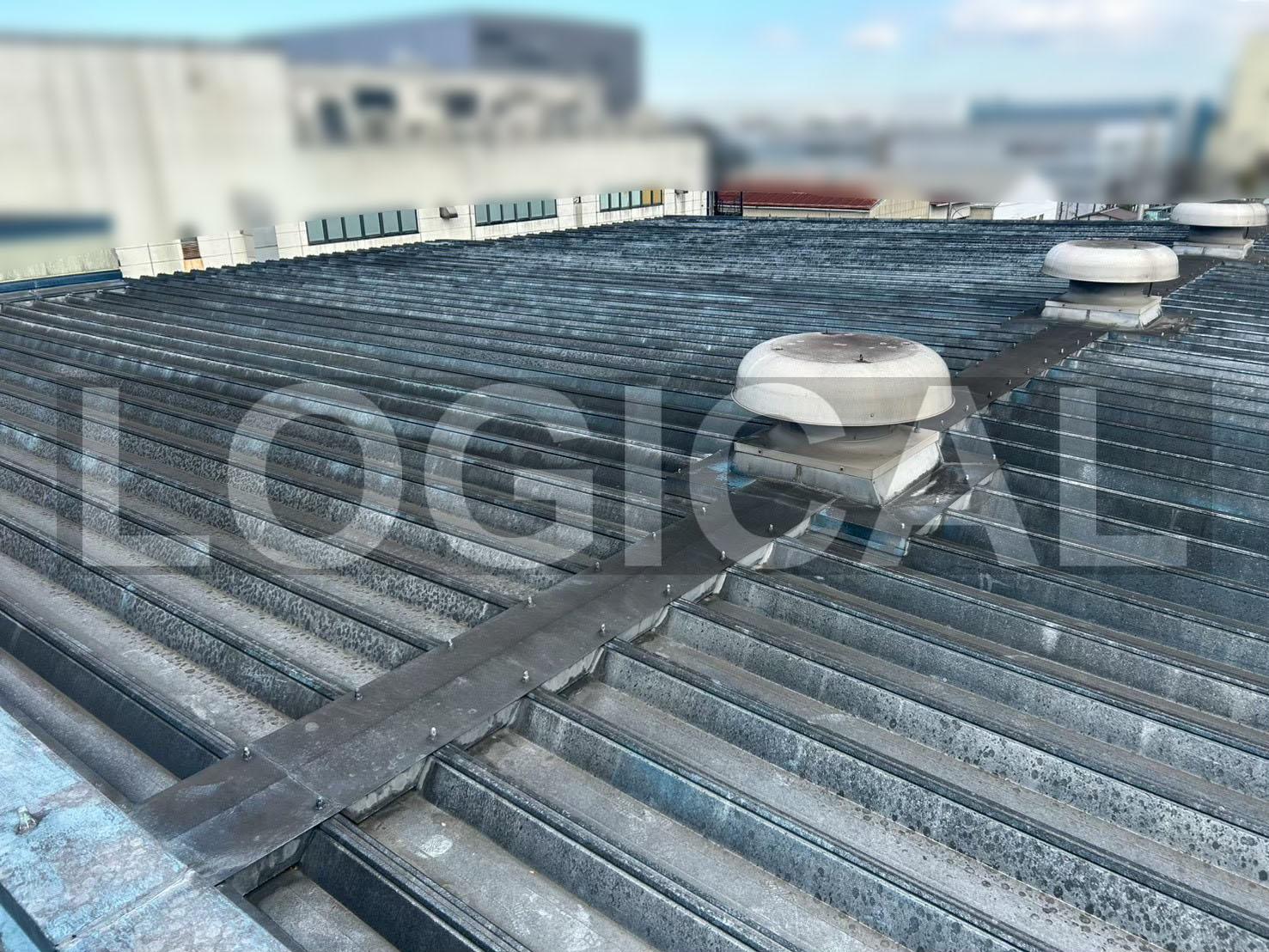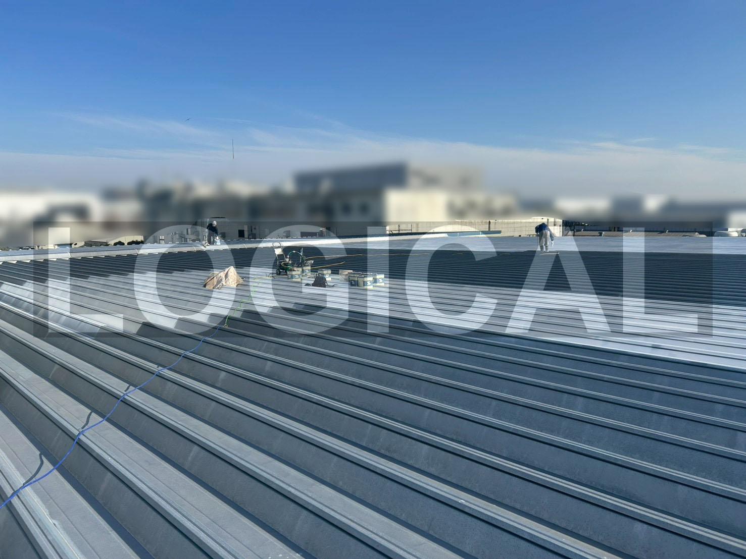 夏場の倉庫内温度上昇を抑えるため、屋根への遮熱塗装工事を実施しました。