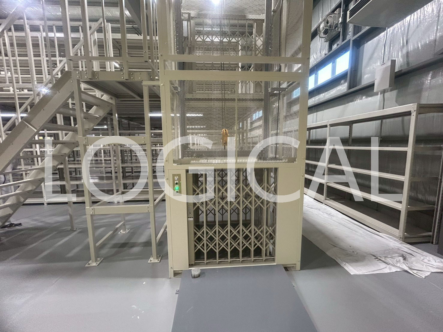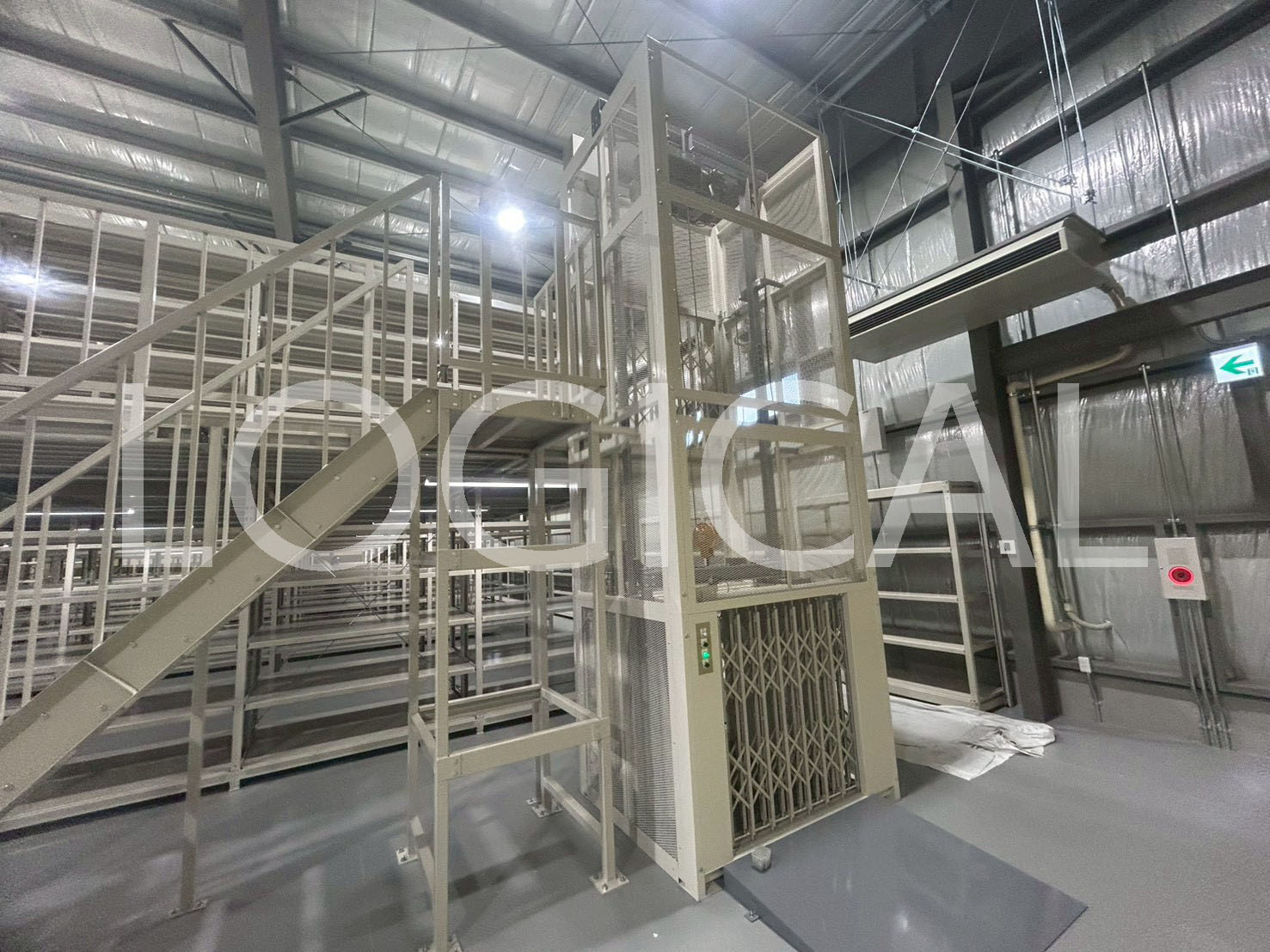 また、積層ラック上層フロアへ荷物をスムーズに搬出入できるよう、簡易リフトを新設。