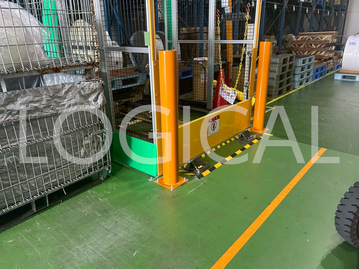 自動倉庫のセンサーや周辺機器をフォークリフトや台車の接触から守るため、3M製の安全ポールを設置しました。